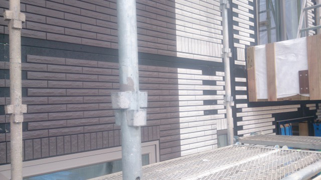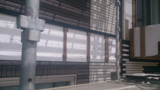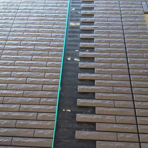 ※サイディング施工後、ジョイント部にタイルを貼っていきます
